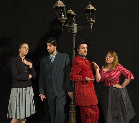 Anoka-Ramsey Community College students (from left) Nathan Detroit, Anne George, Lio Garcia Cardenas and Courtney VonVett rehearse for the college’s upcoming musical Guys and Dolls, Feb. 12, 13, 18, 19 and 20, 7:30 pm at the Coon Rapids Campus Performing Arts Center. Tickets are $8 and available online (http://ow.ly/XNRWW) at the college bookstore, and at the box office 30 minutes before the show.